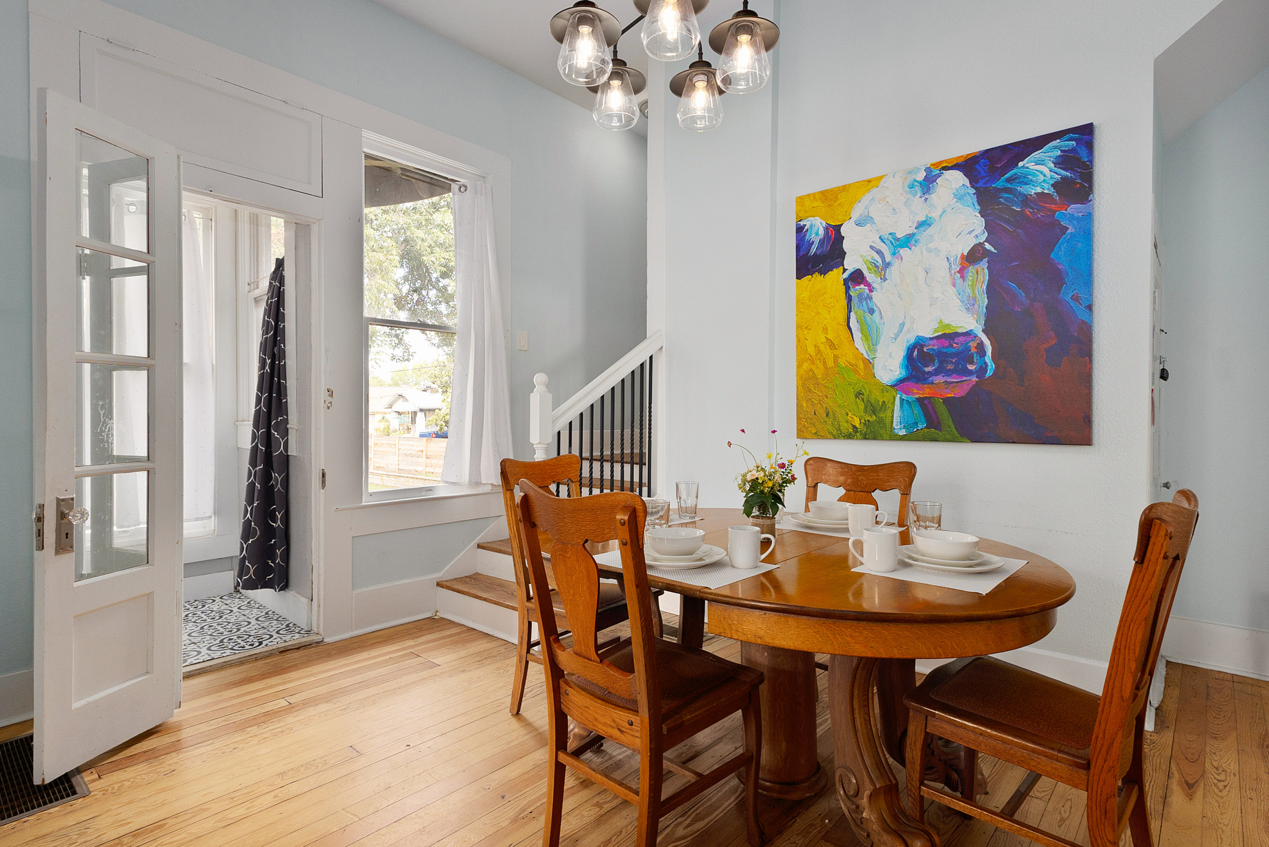 Welcome to Ellie Marie House! Walk to downtown from this bright, beautifully restored historic home at Bowie & Terrell. Enjoy Seguin’s cafés, boutiques, and the Guadalupe River when you stay here. Tall windows, transoms, and leaded glass flood the main level with natural light while thoughtful modern touches keep everything effortless.